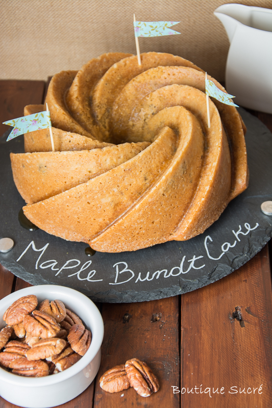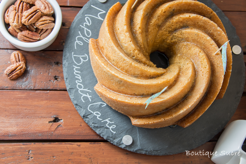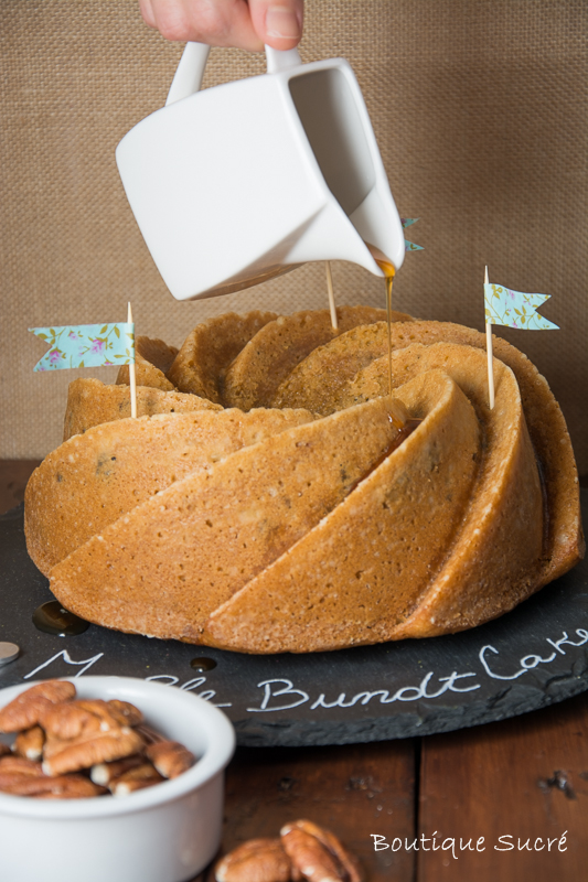 -Saca el Bundt Cake del horno y a los 10 minutos desmóldalo. Deja que se enfríe por completo sobre una rejilla y decora con Sirope de Maple por encima.