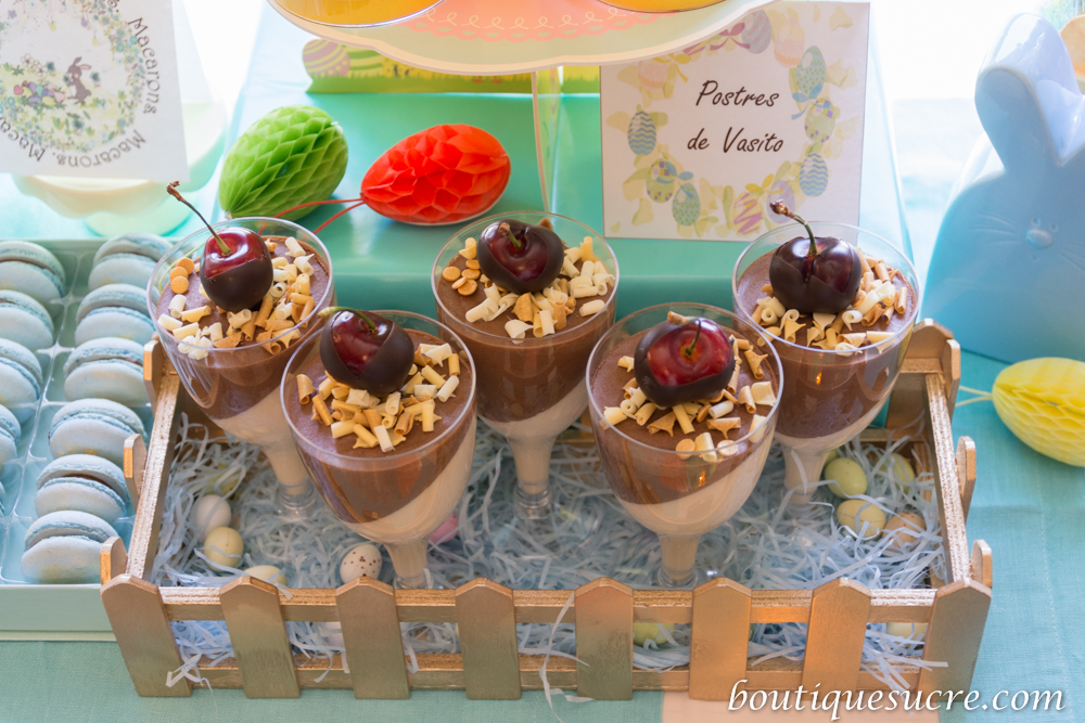-Decora las copas con Confeti o rulos de chocolate Blanco y una Cereza cubierta de chocolate fundido.