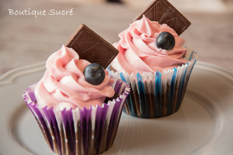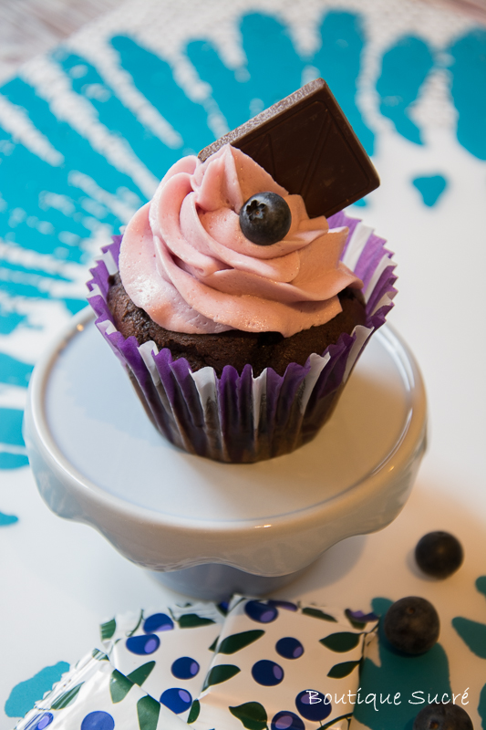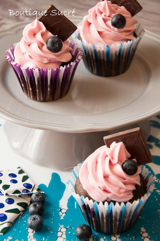 -Coloca un arándano y una pastilla de Chocolate Negro con Arándanos Azules sobre la crema y listo… ya tendrás unos Cupcakes deliciosos hechos en casa.