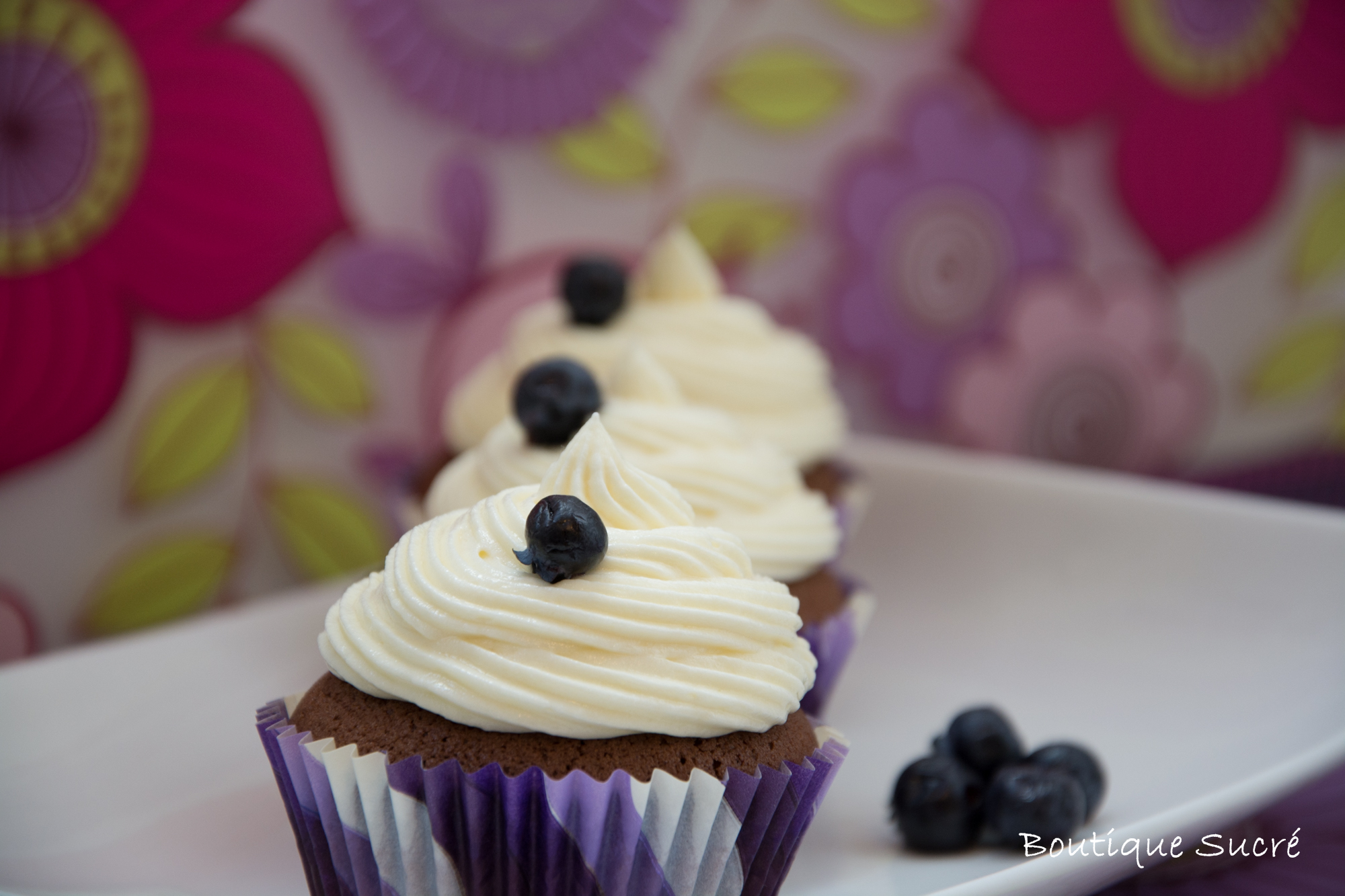 -Prepara tus capsulas en la bandeja especial para Cupcakes. Vierte un poco de la masa, coloca unos 4 arandanos y vierte un poco mas de mezcla sobre los arandanos hasta llenar máximo el capacillo o capsula hasta la mitad.