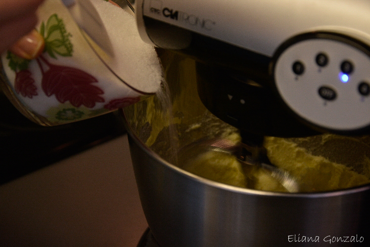 – Bate la mantequilla con el azúcar  hasta que la mezcla esté cremosa y homogénea