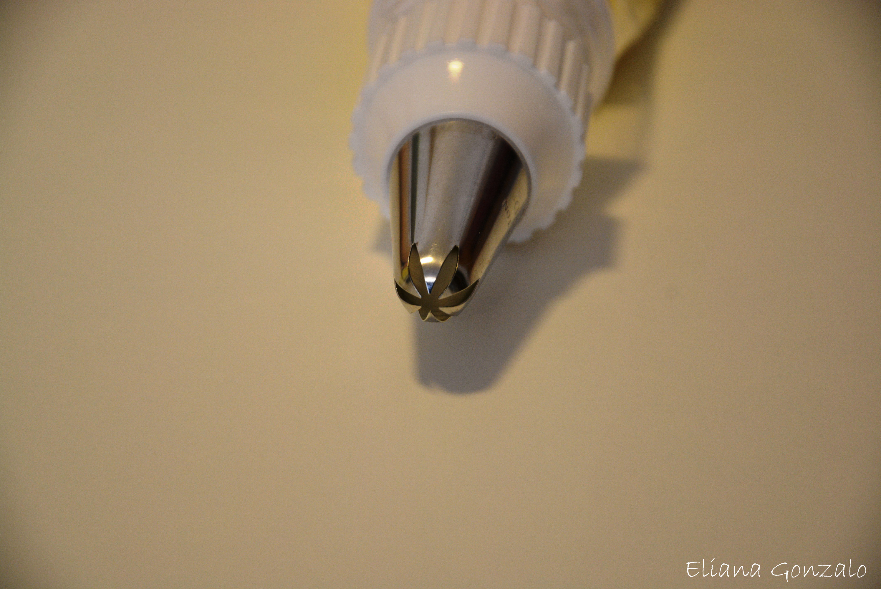 -Coge una manga pastelera y monta una boquilla 2D.