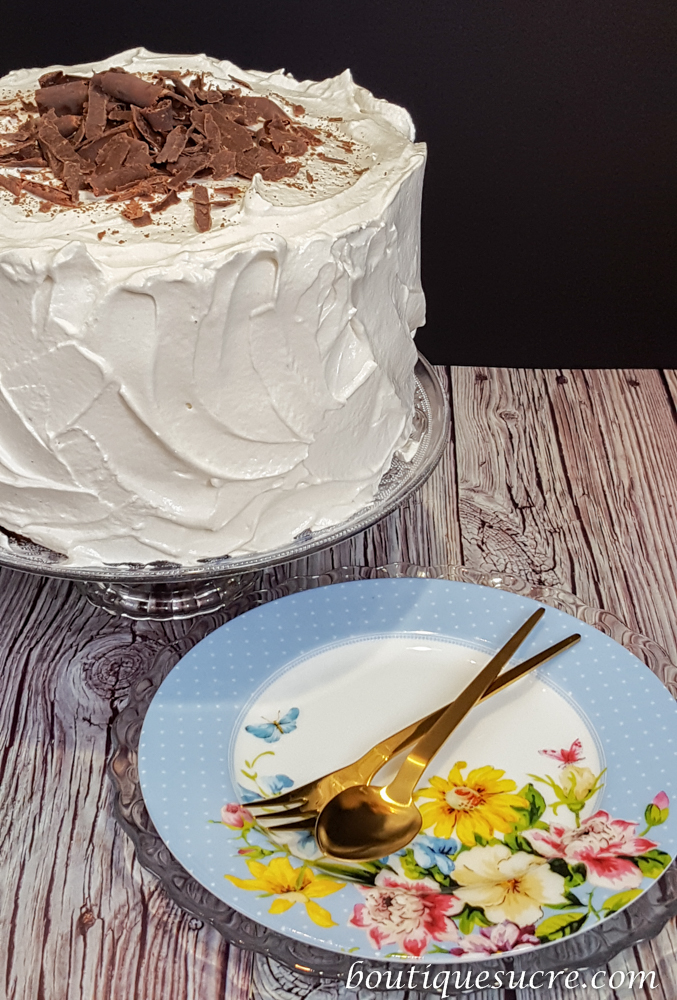 -Cubre con el resto del Merengue la tarta a modo de frosting formando picos ayudándote con una espátula de pastelero haciendo ondas.