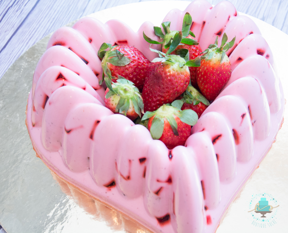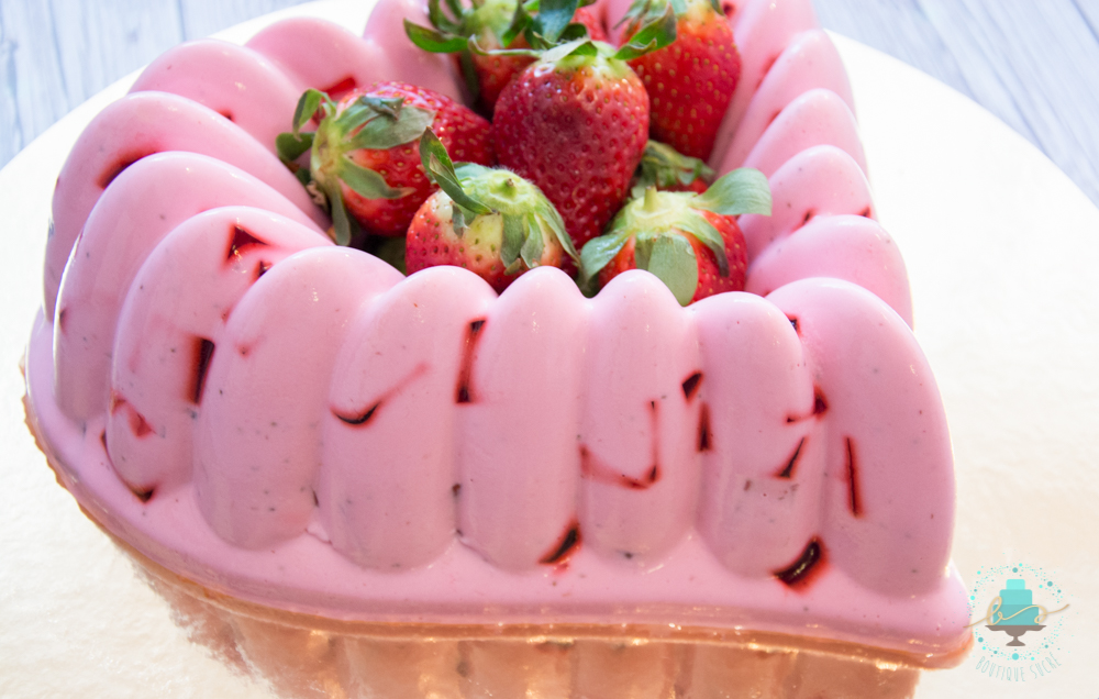 -Desmolda la gelatina y decora con Fresas naturales. Si notas que tu gelatina le cuesta desoldarse te puedes ayudar sumergiendo el fondo del molde en agua tibia por unos segundos y así se desmoldara mas fácil.
