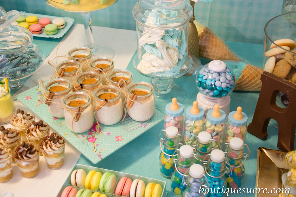 La Mesa Dulce de la Fiesta contó con una Decoración de Pajaritos con sus Casas y Jaulas ambientando este Baby Shower en un pequeño Bosque.