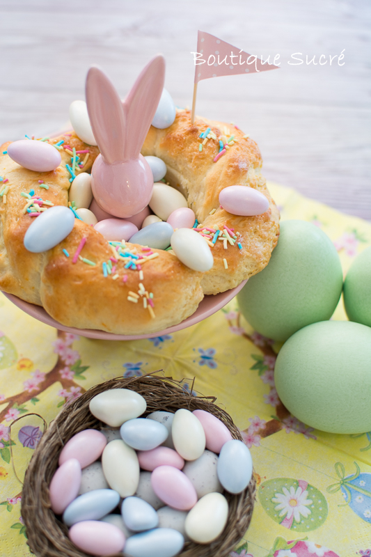 -Puedes hacer las Monas de la forma que prefieras, como una rosca, rosca trenzada (como la hice yo) o en forma de animales.Si la haces en forma de rosca pon el el centro un cortador circular ligeramente engrasado con aceite, o los huevos cocidos ya coloreados si deseas hacerlo de la forma tradicional. Como yo decoré mis Monas con peladillas y confeti, al hornearlas puse en el centro de cada rosca un cortador circular y cuando ya estuvieron horneadas procedí a decorarlas.