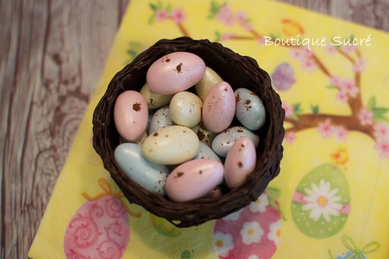-Cuando estén listos tus nidos rellénalos de las almendras o huevitos de chocolate. Puedes espolvorearlos con cacao en polvo para darle mas naturalidad al cascaron de los huevos como aparece en la foto de abajo. Listo, ya tendrás un postre muy divertido de Pascua para los peques y no tan peques de la casa.