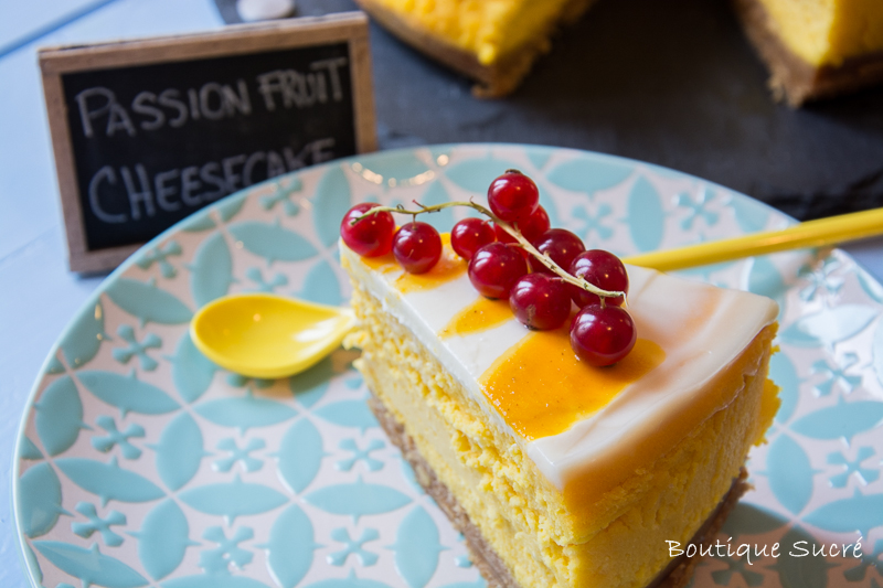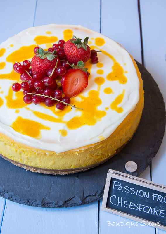 -Decora con pulpa de Fruta de la Pasión por encima del glaseado para darle un toque de color a tu Cheesecake y también puedes colocarle unas grosellas, Fresas o las Frutas que desees como toque final en el centro de la tarta tal como aparece en la fotografía.