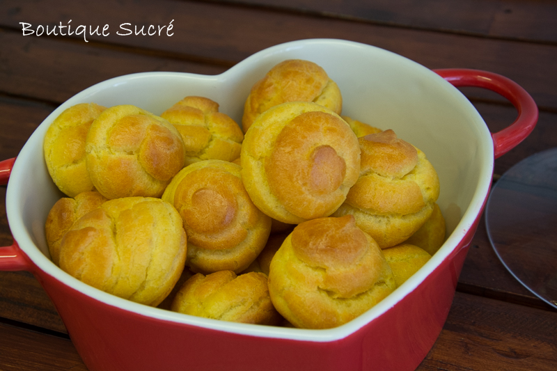 -En un cazo vierte la leche, el agua, el azúcar, la sal y la mantequilla. Cuando empiece a hervir añade la harina, mezclando muy bien por un par de minutos. Retira la masa del fuego, traslada al bowl de la batidora eléctrica y bate hasta que se enfríe la mezcla. Luego añade los huevos y continua batiendo en la batidora con ayuda del gancho para masa, hasta obtener una masa lisa, brillante y flexible.