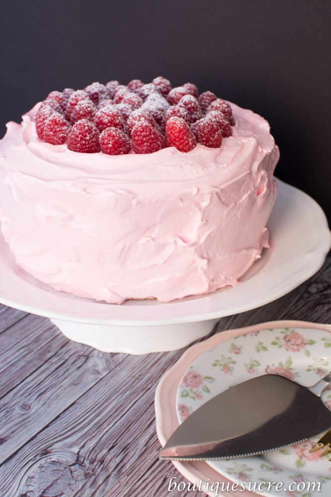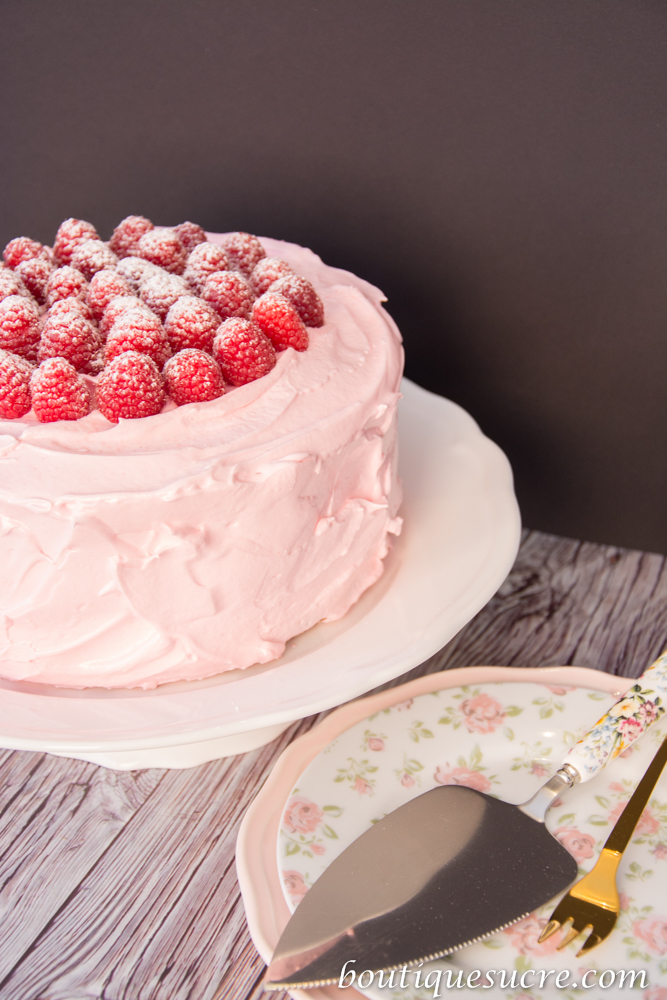 -Cubre de Frosting una de las tartas y puedes añadir mas frambuesas sobre la Crema entre ambas tartas.